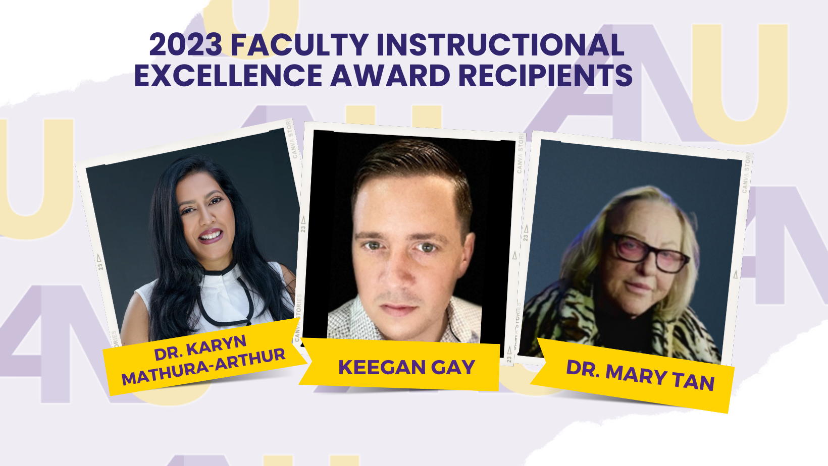 Three members of the ANU faculty — Dr. Mary Tan, Dr. Karyn Mathura-Arthur, and Keegan Gay — have been named recipients of our Semi-Annual Faculty Instructional Excellence Award of 2023. Program chairs, deans, and direct managers undergo the nomination process twice each year, seeking individuals who embody ANU’s values. Nominees must display a commitment to teaching and their students, an engaging, encouraging, active teaching approach to ensure students are intellectually stimulated, the ability to effectively communicate with students, and a positive, lasting impact on students. Earning this award is how we recognize members of the faculty who embody these ANU values.