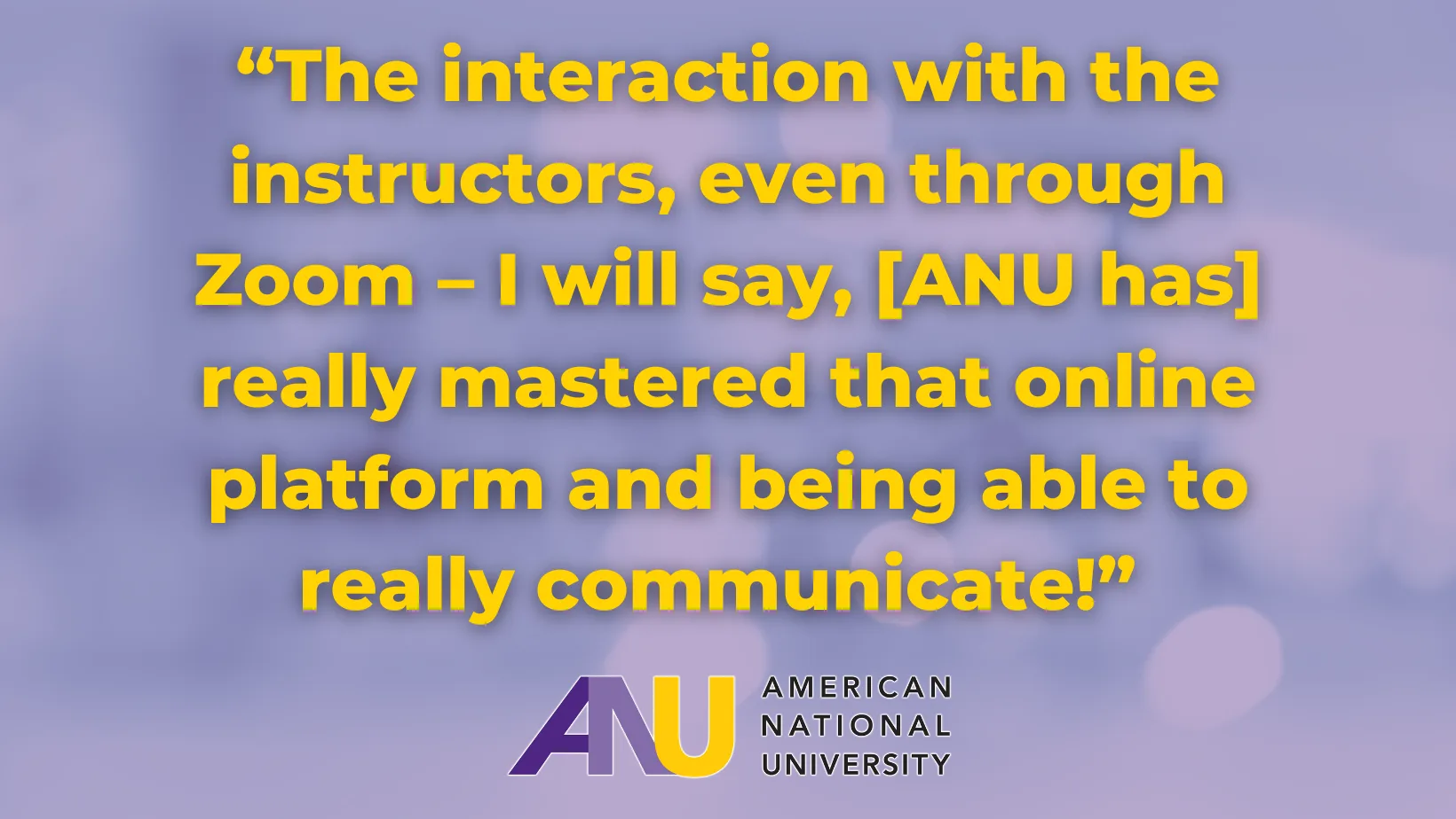 “I would definitely!” She explained that while she worked for her previous employer, she was working remotely. However, they didn’t have the work ironed out. “I’ve told people how [ANU] has mastered… [remote work]. It’s seamless! Even the online textbooks – where that’s not something I normally would like – it worked!”