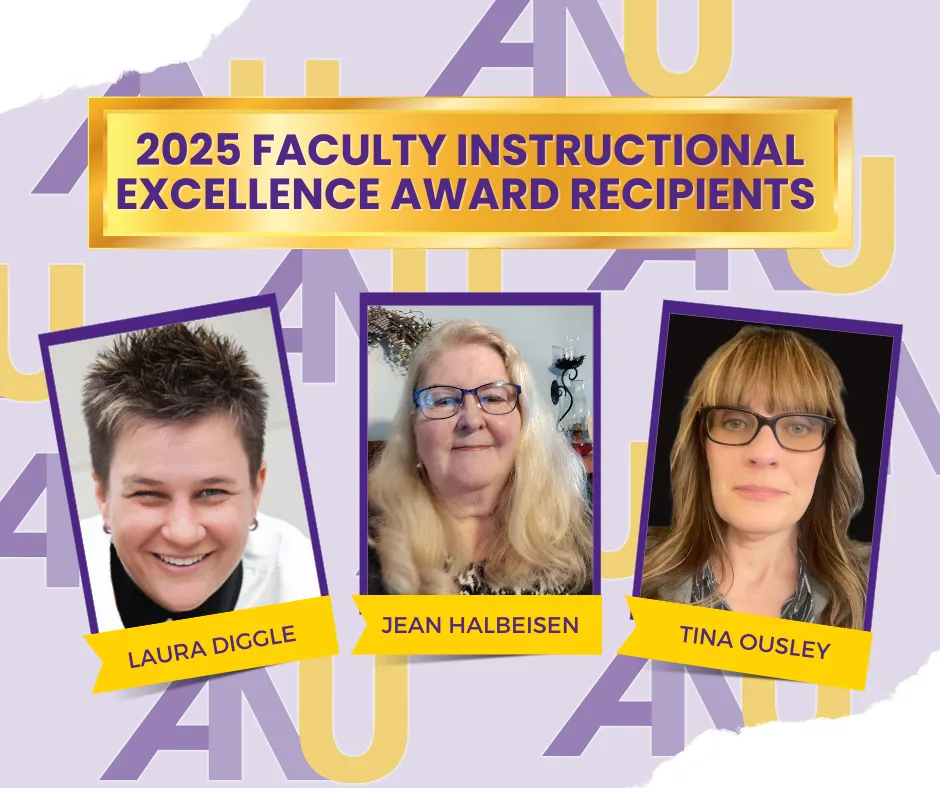 In the inaugural round of American National University’s Bi-Annual Faculty Institutional Excellence Award, three outstanding professors have been honored: Laura Diggle, Tina Ousley, and Jean Halbeisen. Twice each year, program chairs, deans, and direct managers nominate faculty members who exemplify the core values of ANU. Nominees are recognized for their dedication to teaching and student success, their dynamic and supportive instructional style, strong communication skills, and their lasting impact on students’ educational journeys. This award celebrates faculty who go above and beyond—qualities clearly demonstrated by this year’s recipients through their unwavering commitment to their students, classrooms, and the high-quality education ANU strives to deliver.