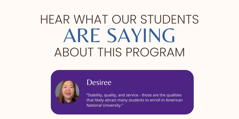American National University’s Business Administration Management bachelor degree program offers is specifically designed to prepare students for a career in today’s demanding business world and, as such, prepares graduates with a wide range of business skills to help them move up the corporate ladder. As a student, you will: